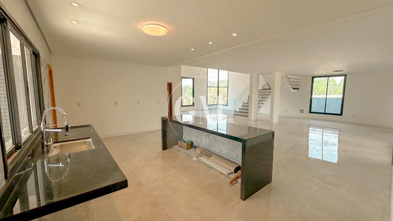 A cozinha moderna e espaçosa foi planejada para unir funcionalidade e estilo, enquanto a sala de TV no pavimento superior é o refúgio perfeito para momentos de descanso.