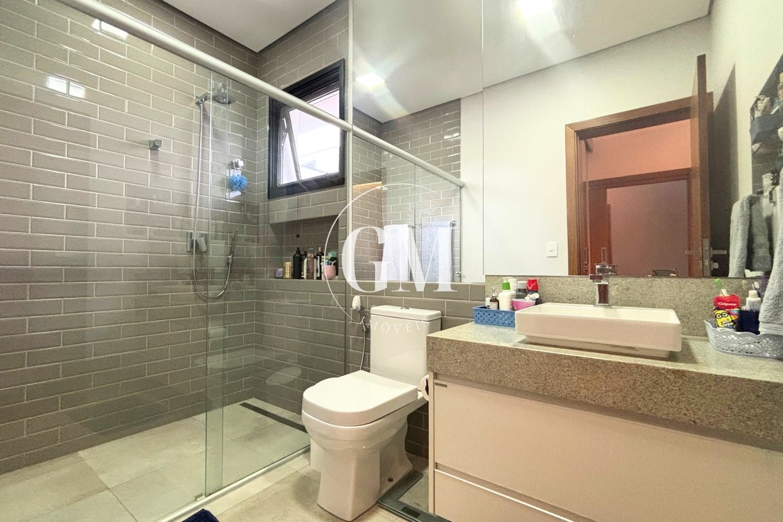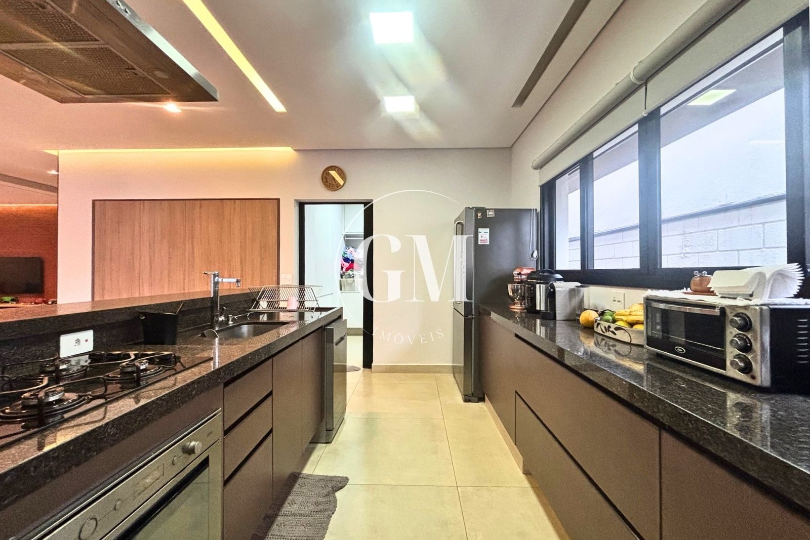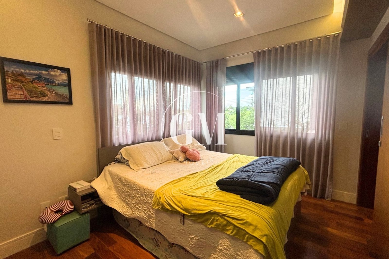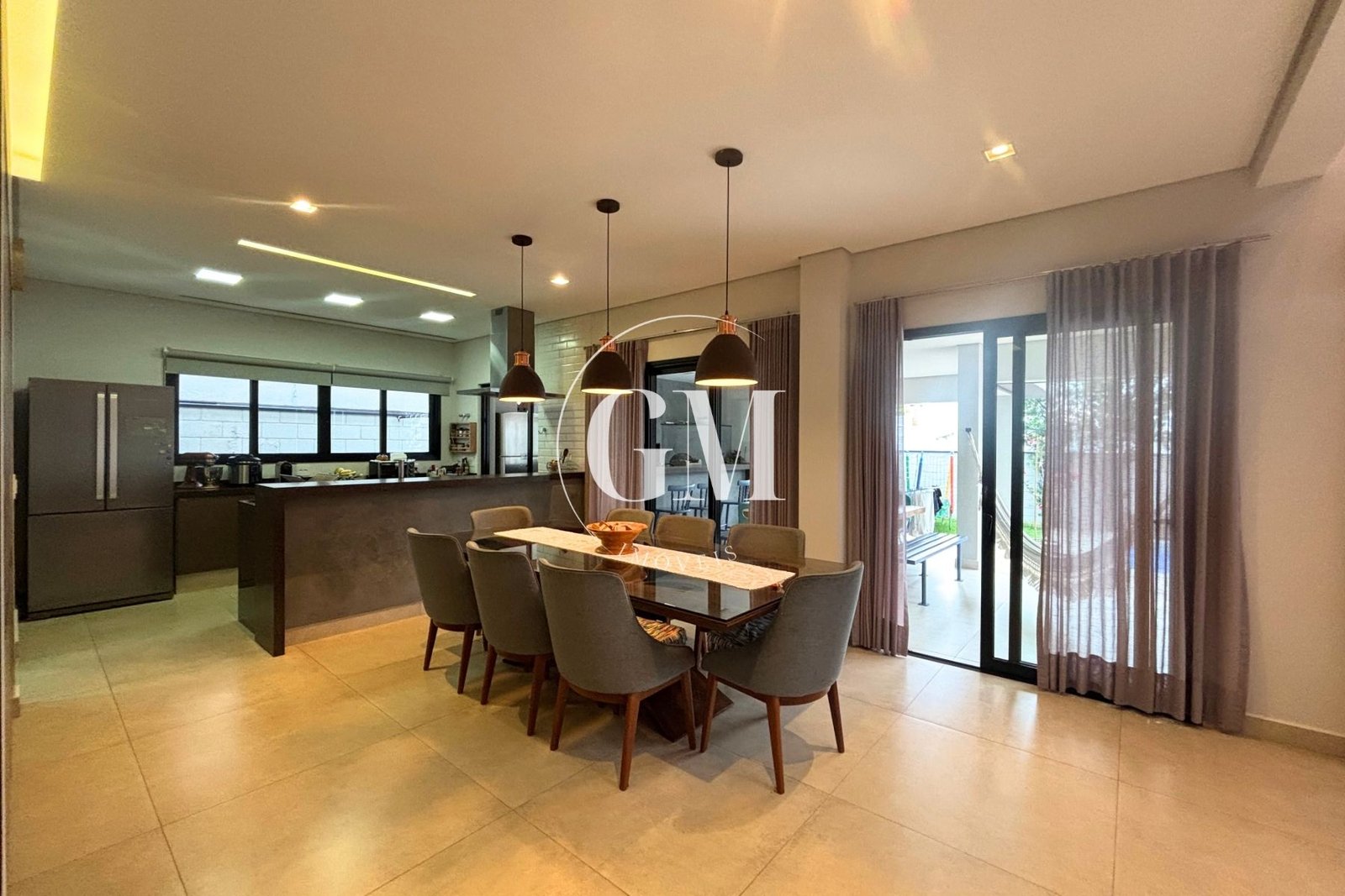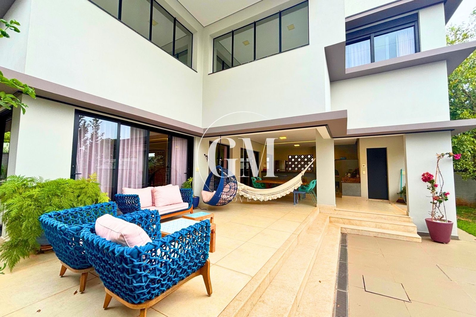 Os ambientes internos refletem um alto nível de acabamento e atenção aos detalhes. As bancadas da cozinha e do espaço gourmet são em granito Café Imperial, com acabamento polido e escovado, conferindo sofisticação e um visual diferenciado. A casa conta com marcenaria de alto padrão assinada pela Bontempo, todas as persianas automatizadas, ar-condicionado em todos os dormitórios e no escritório, além de piso de taco no pavimento superior, que adiciona aconchego e elegância à área íntima.