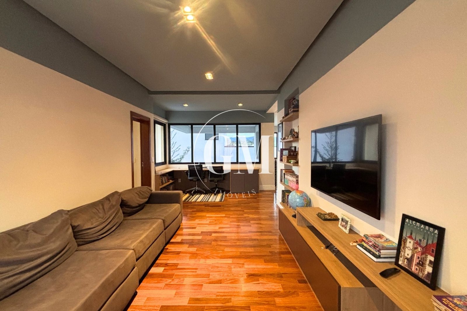 A área íntima e social foi pensada para atender com conforto tanto a rotina familiar quanto o home office. São 4 dormitórios, sendo 2 suítes, além de escritório privativo, sala de TV e ambientes bem distribuídos, que favorecem a circulação e a iluminação natural.