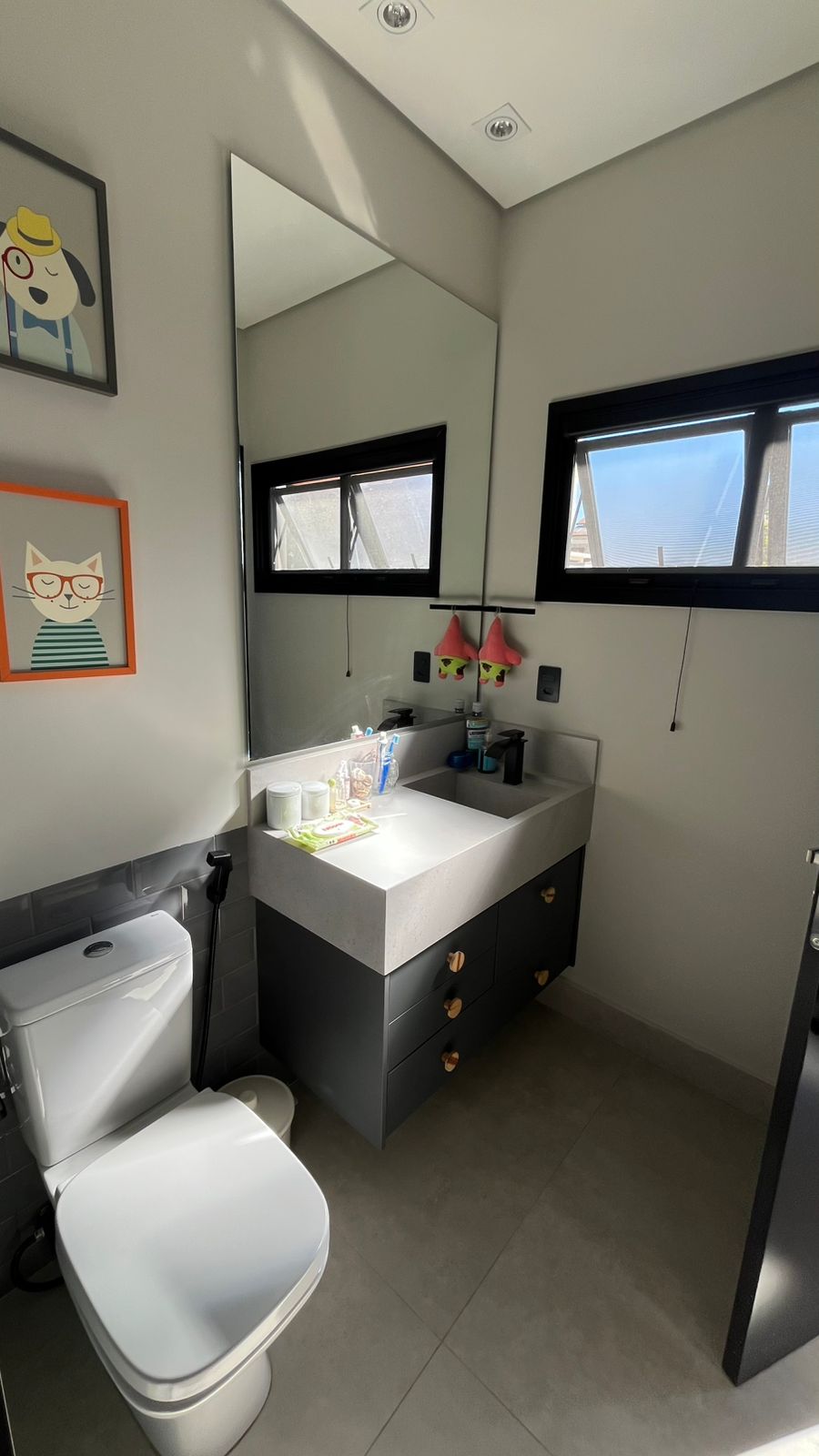 4 suítes completas, todas com pias esculpidas em porcelanato, toalheiros aquecidos, iluminação em LED e ar-condicionado