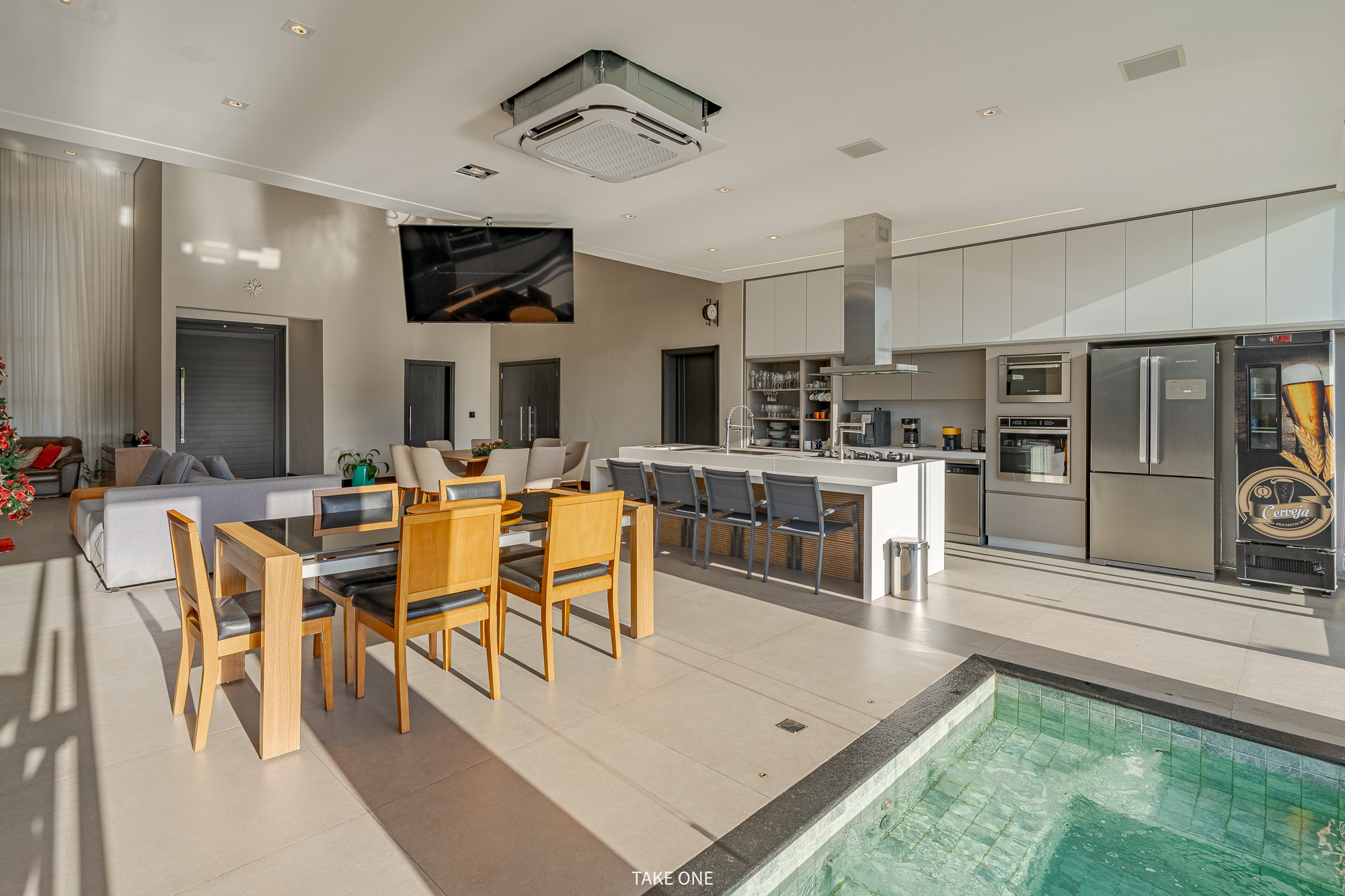 Totalmente automatizada, a residência oferece controle inteligente de iluminação, som ambiente e demais sistemas, além de contar com aspirador central com entradas embutidas na parede, trazendo praticidade e organização ao cotidiano. O imóvel também possui poço artesiano, um diferencial que reforça autonomia e sustentabilidade.