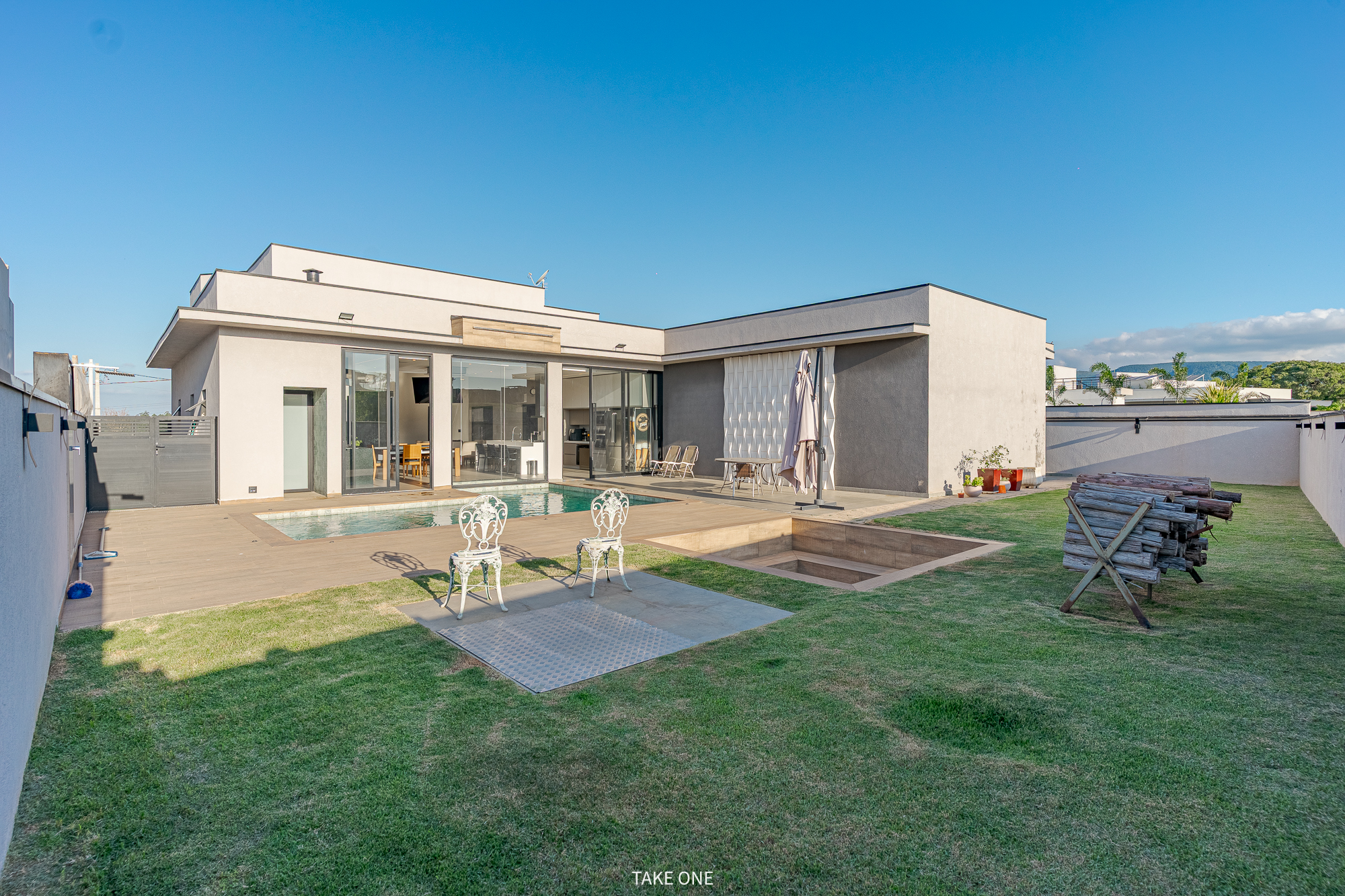 Na área externa, o lazer ganha destaque com uma piscina, espaço com fogo de chão, o que cria cenário ideal para encontros, descanso e momentos memoráveis. O conforto térmico é assegurado por ar-condicionado em todos os ambientes e sistema de aquecimento central de água com boiler atendendo toda a casa.